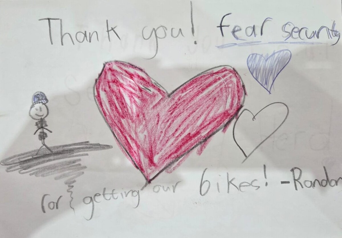 We received word from the owner of the property that the kids are very happy we were able to get their bikes back and that they wrote us a letter to say thank you!
